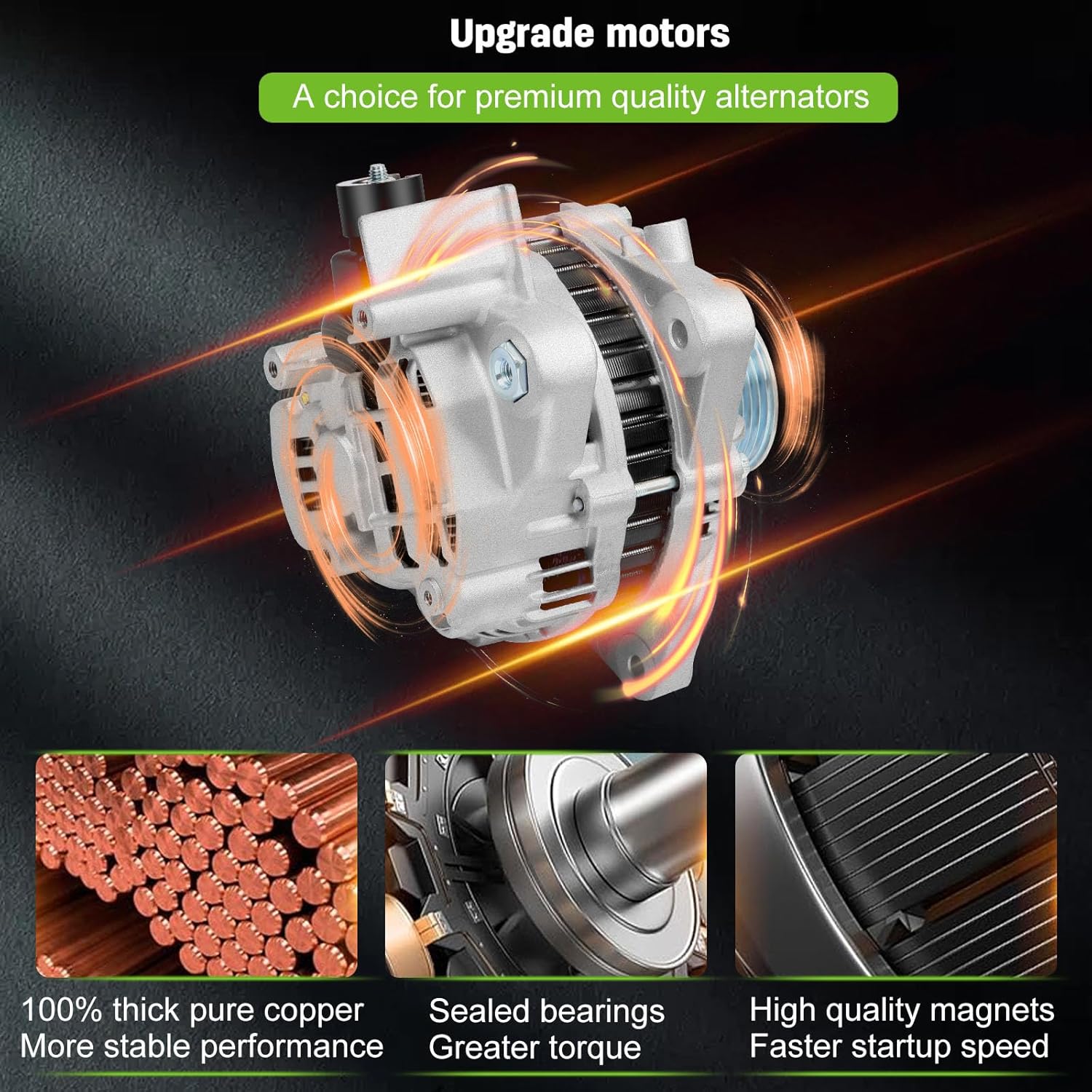 - 【High-Performance Specifications】 – Engineered with Voltage: 12V; Amperage: 80Amp; Rotation: CW (Clockwise); Regulator: IR (Internal Regulator) ; Fan: IF (Internal Fan); Grooves: S7 Pulley; Plug Clock: 4 ; Plug Code: 933; PULLEY GROOVE OD 60;Condition: New, high output alternator is compact and lightweight, fully compatible with the electronic system of your vehicle, this automotive replacement alternator delivers reliable power for your car, it’s built to meet the demands of modern vehicles