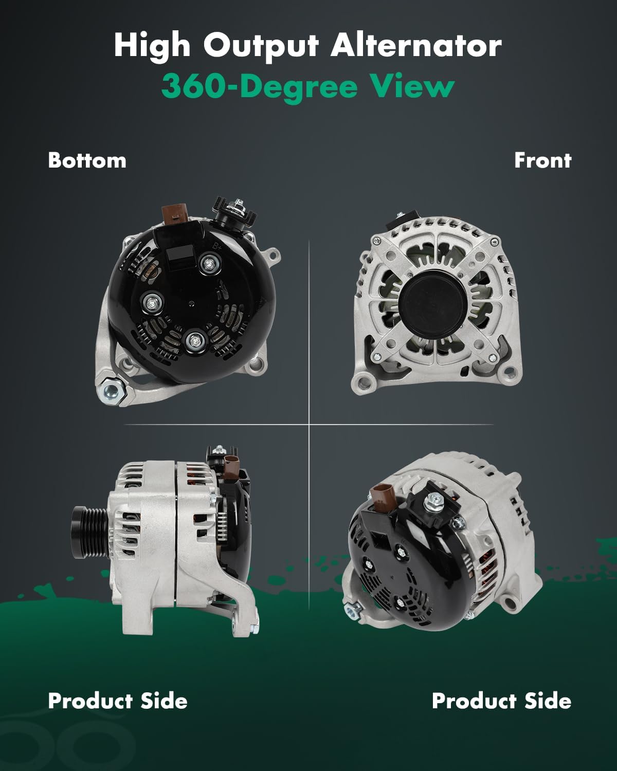 - 【Alternators Specifications】- Voltage: 12V; Amperage: 170Amp; Rotation: CW (Clockwise); Regulator: IR (Internal Regulator) ; Fan: IF (Internal Fan); Grooves: 6 Groove Pulley; Condition: New, high output alternator is compact and lightweight, fully compatible with the electronic system of your vehicle