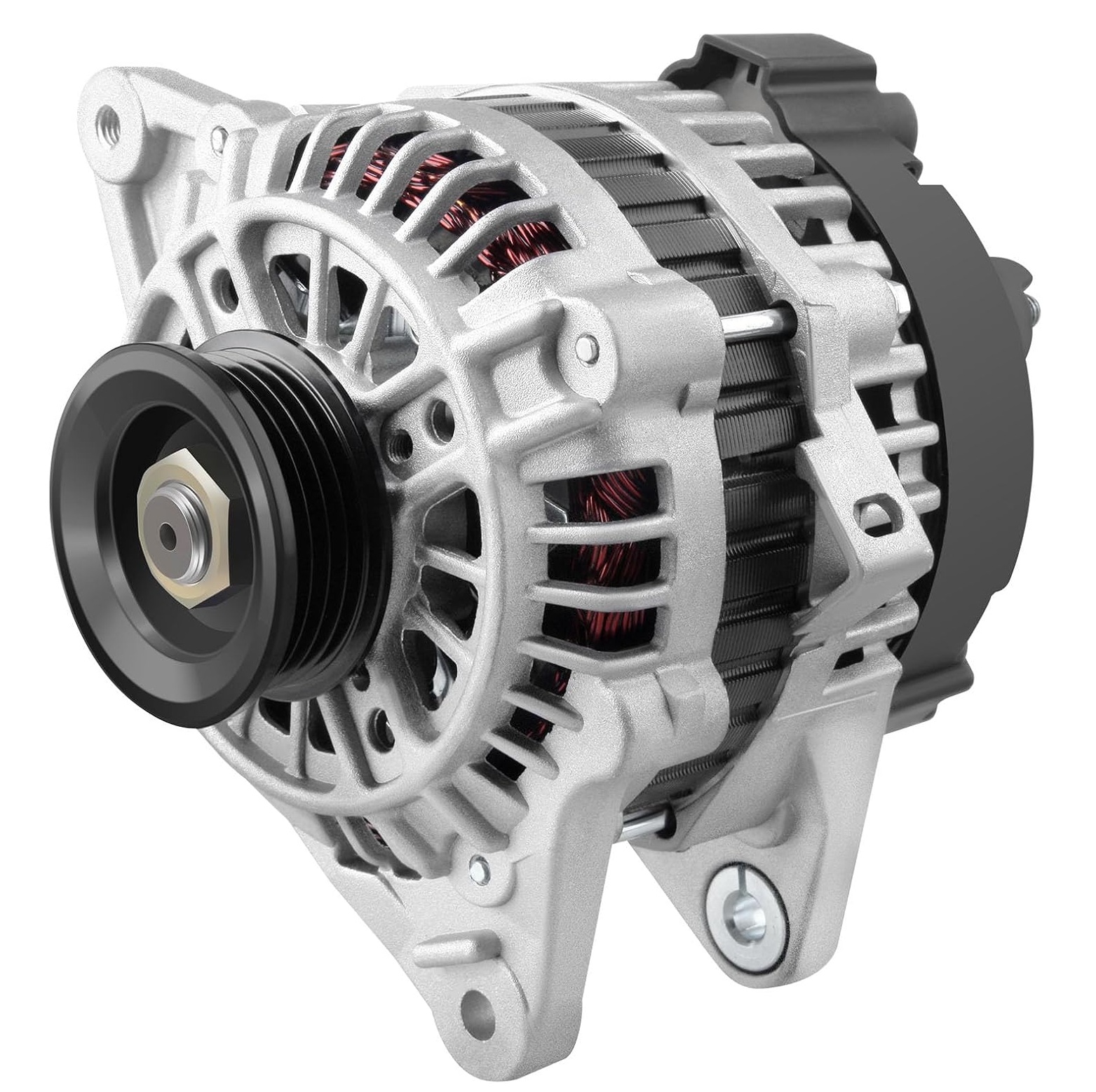 【Alternators Specifications】- Voltage: 12V; Amperage: 90Amp; Rotation: CW (Clockwise); Regulator: IR (Internal Regulator); Fan: IF (Internal Fan); Grooves: 4-Groove Pulley; Condition: New, high output alternator is compact and lightweight, fully compatible with the electronic system of your vehicle